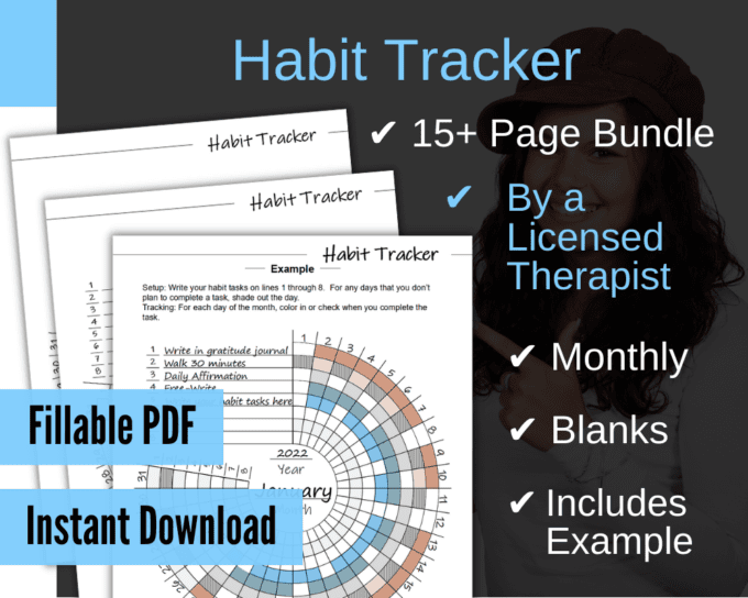Track your habits with the Habit Tracker Bundle.  This bundle includes Monthly and Blank Habit Trackers.  It also includes an example.  Use this tracker to focus creating new habits.